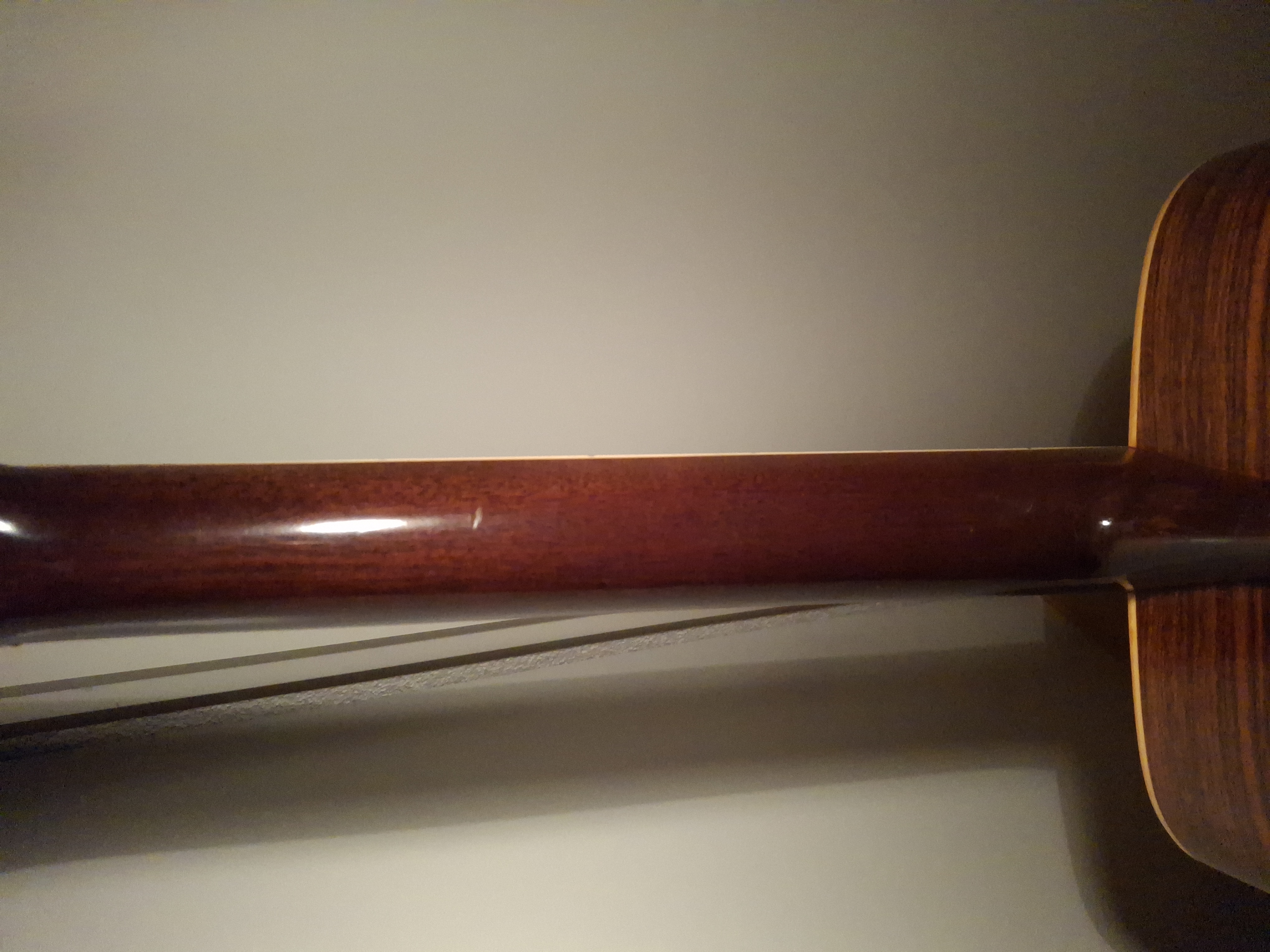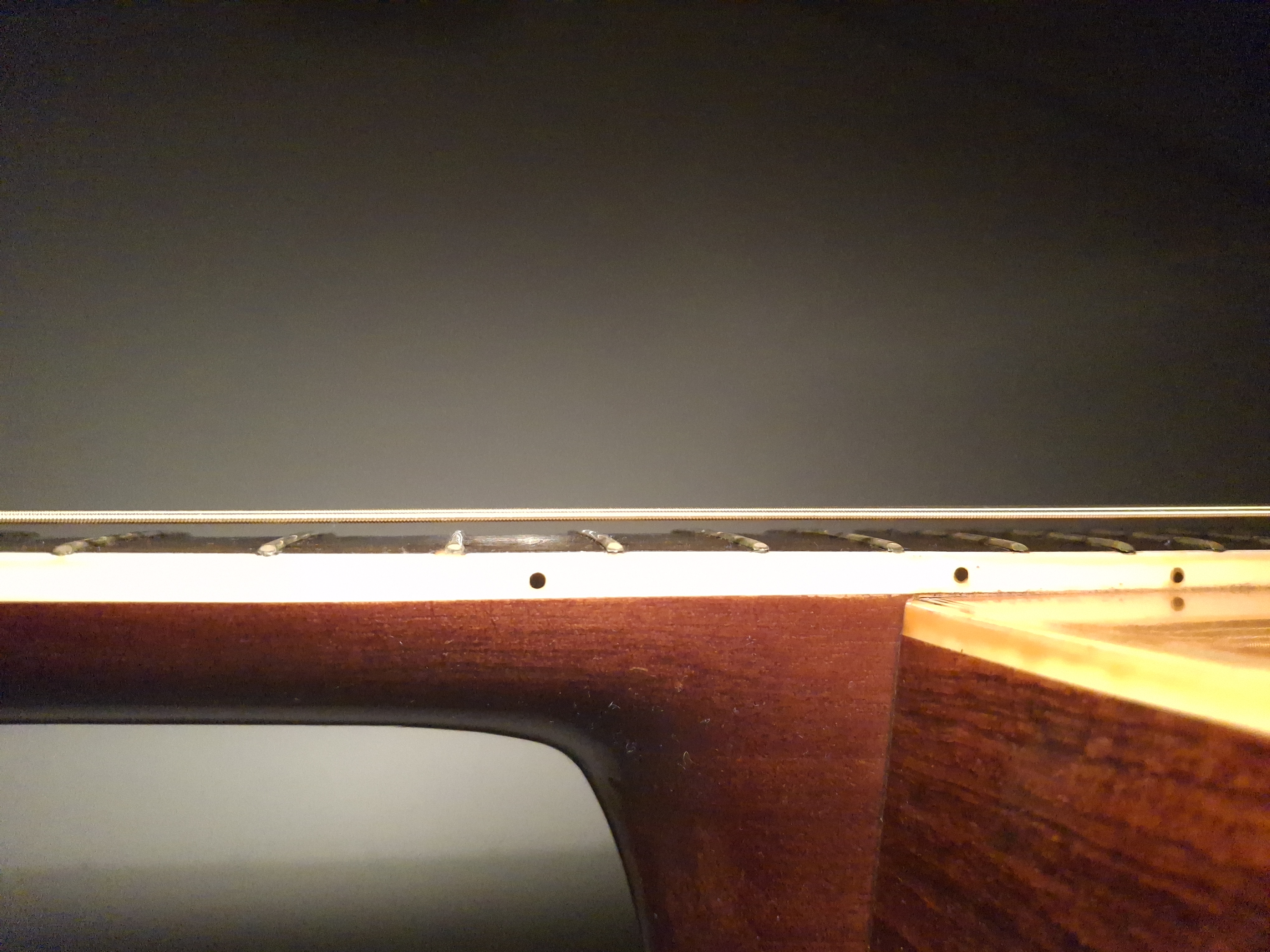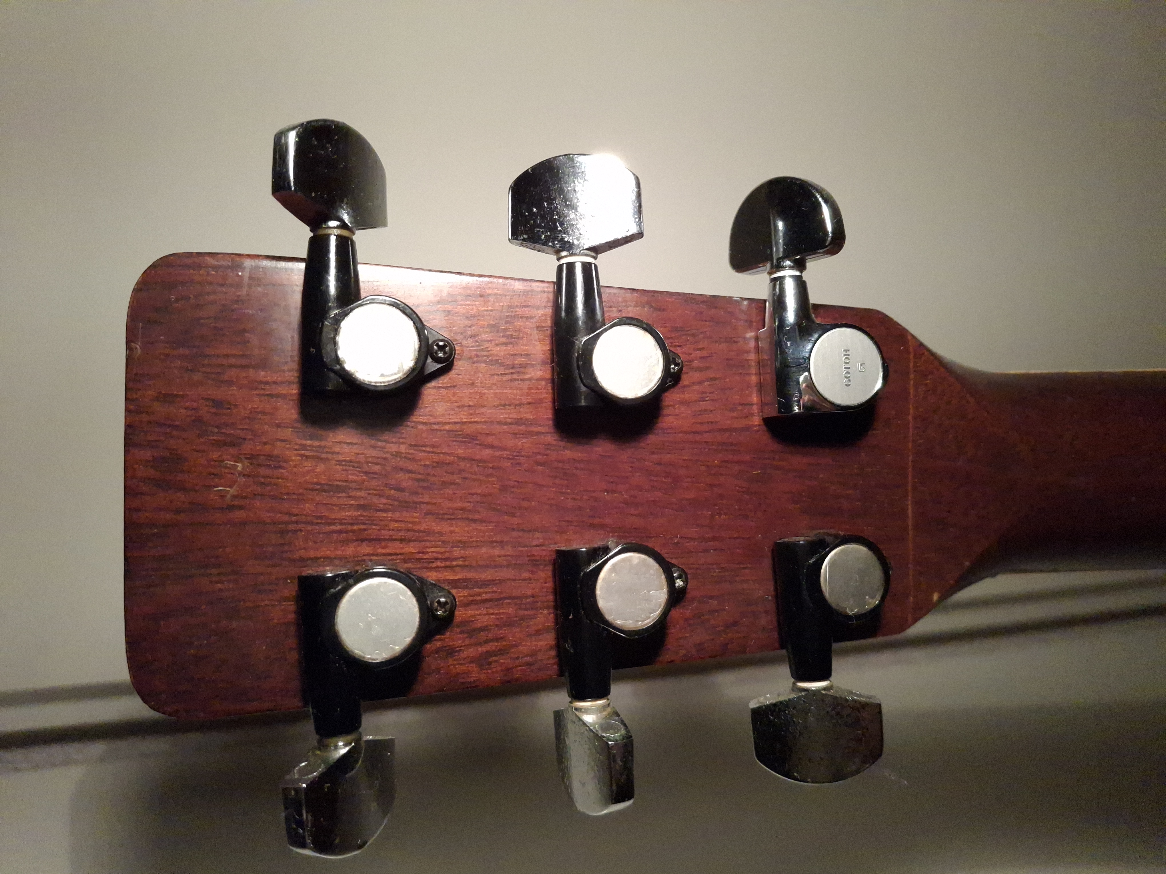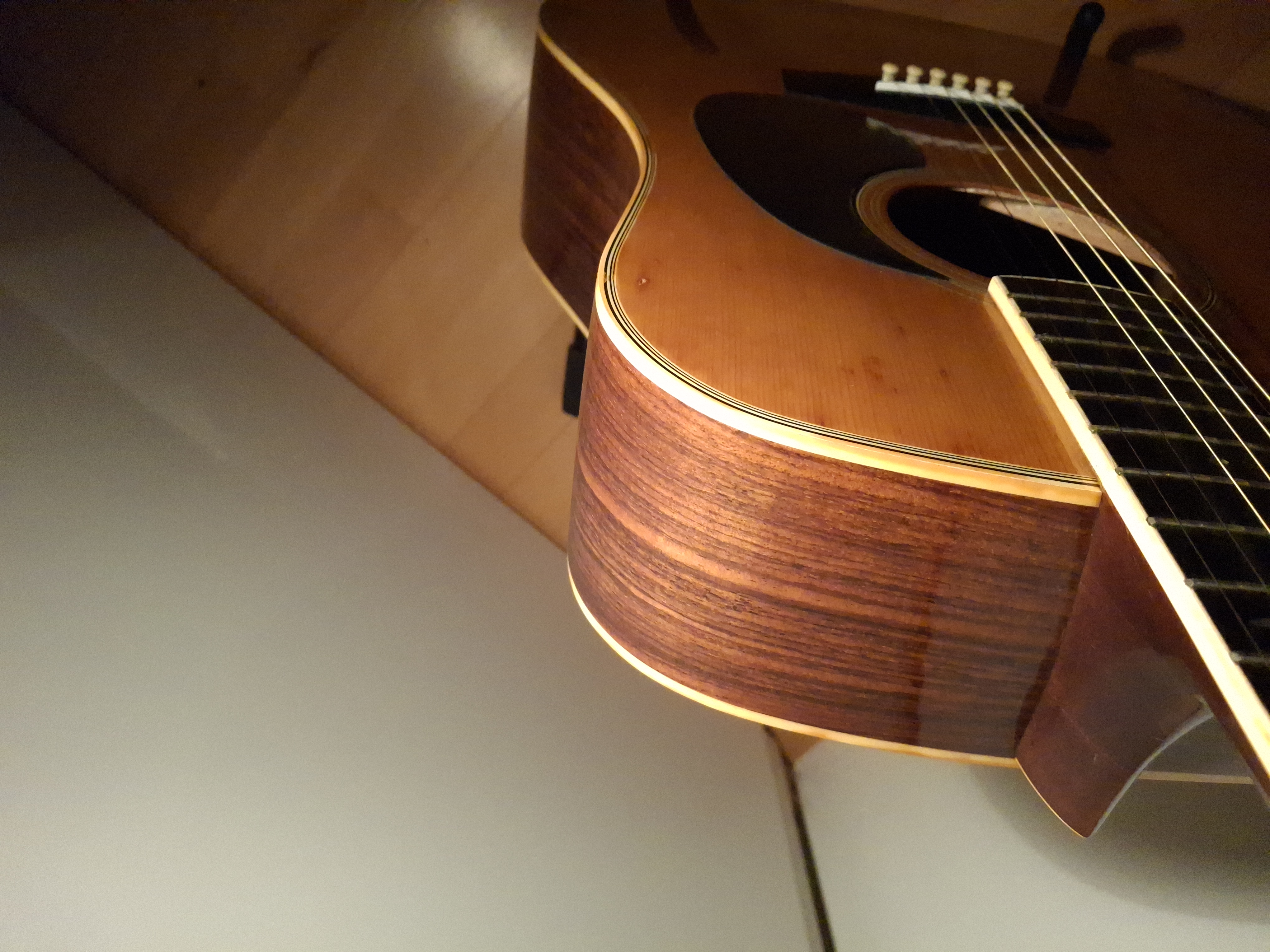 Aside from some stains on the top (likely caused by moisture seeping through small cracks in the finish), the guitar is in quite good condition for its age. The truss rod is adjustable, and the saddle has plenty of clearance.