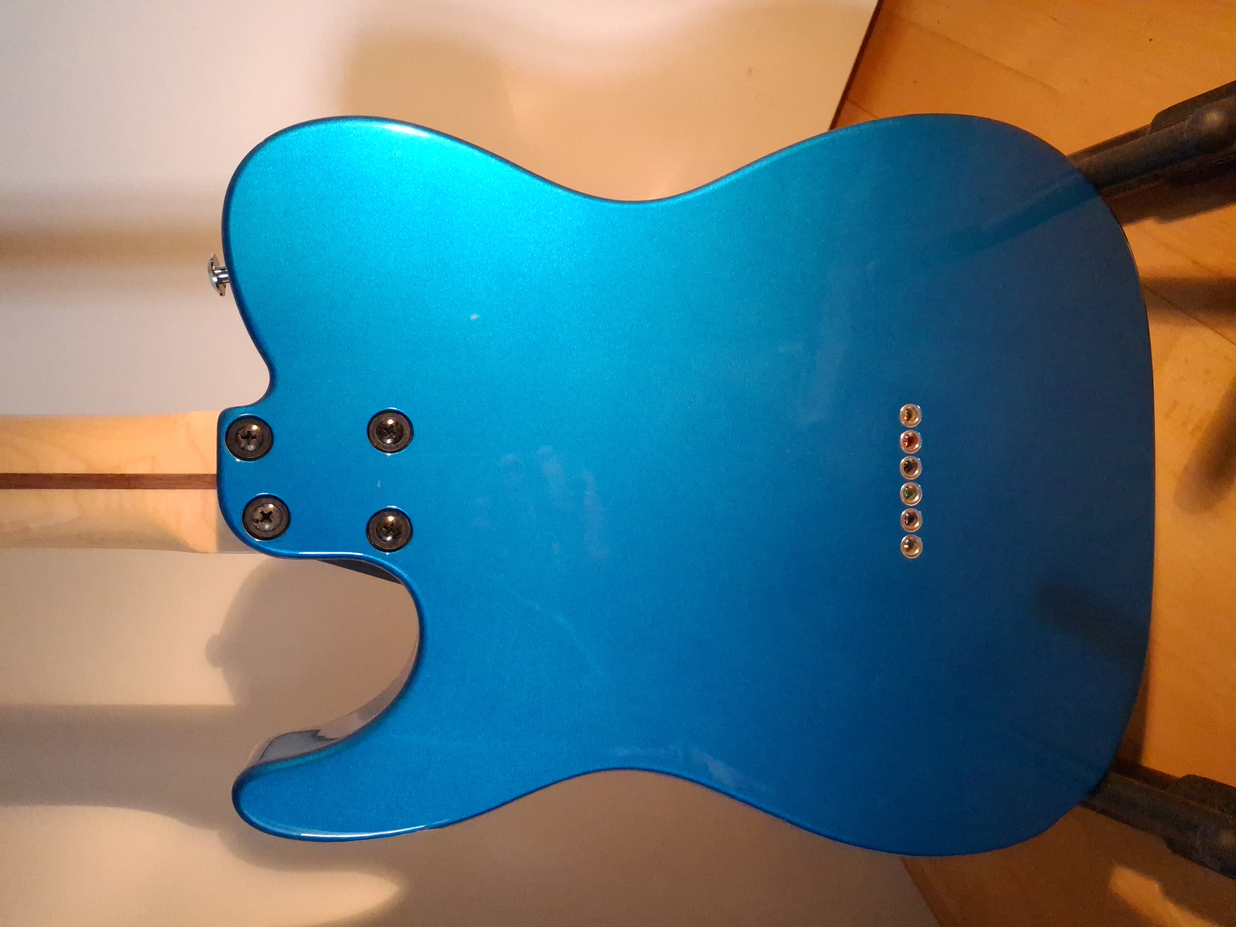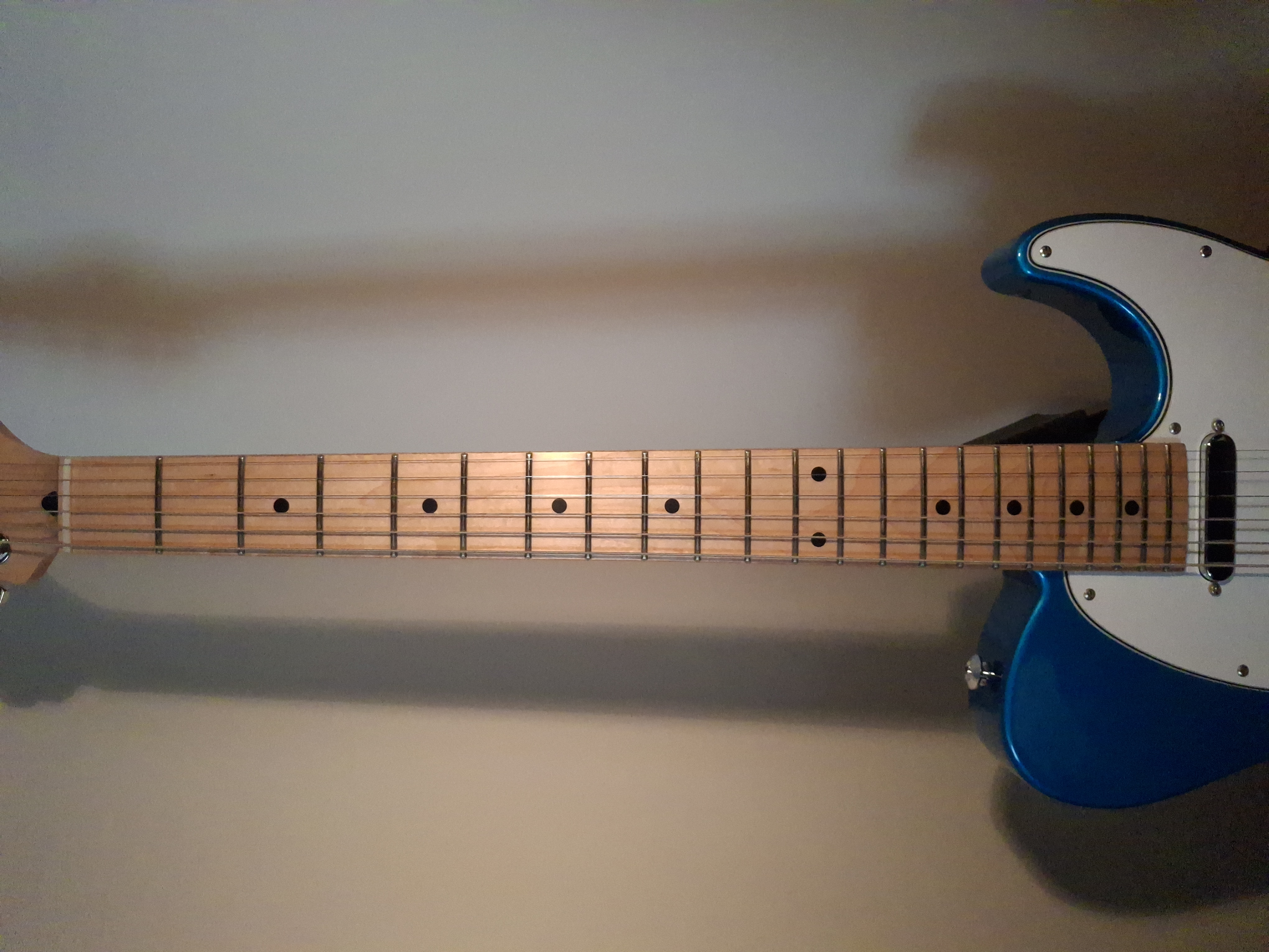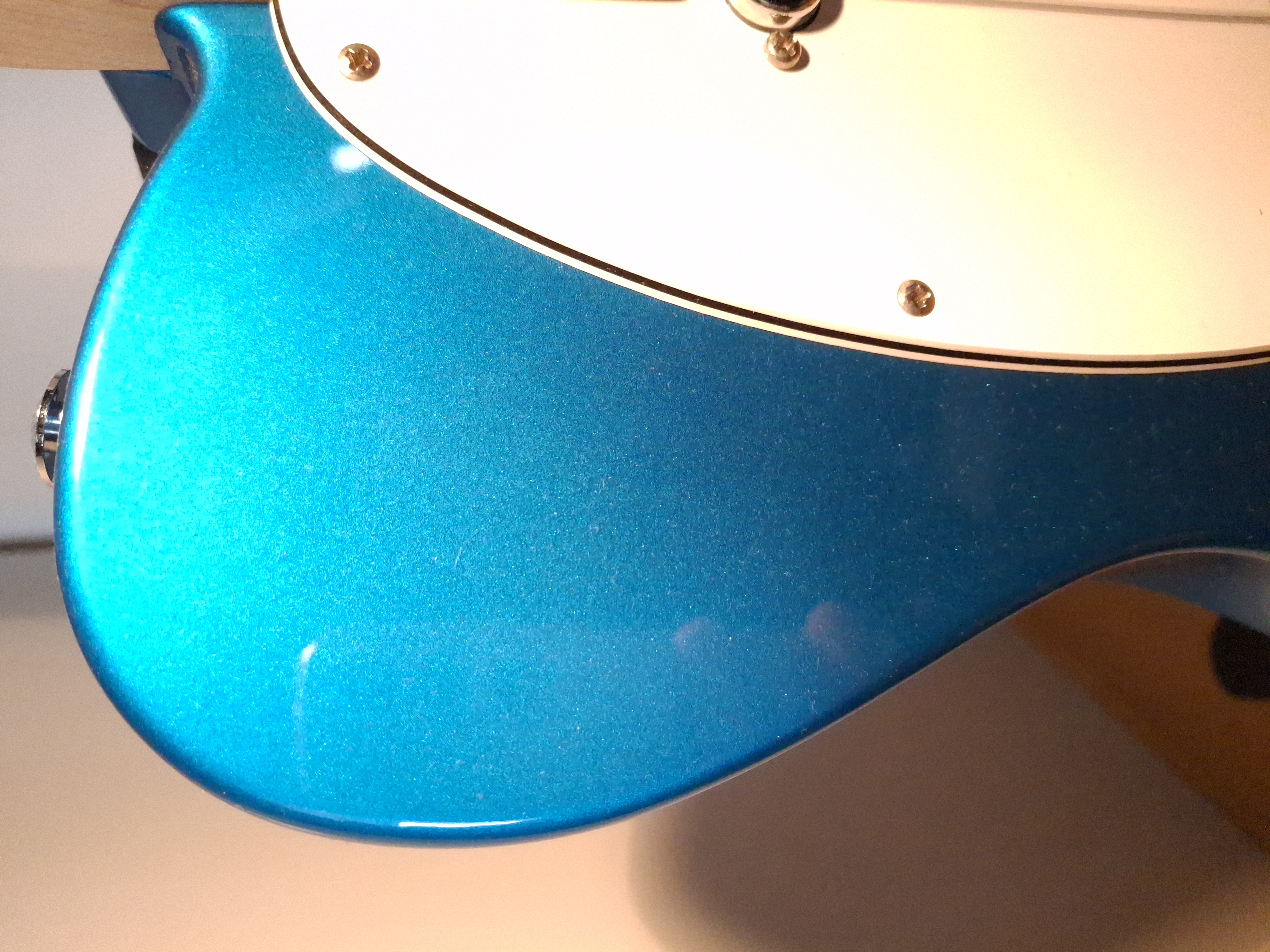 Except for a missing lacquer part on the back underside of the horn and some dings at the upper edge of the body, this guitar is like new.