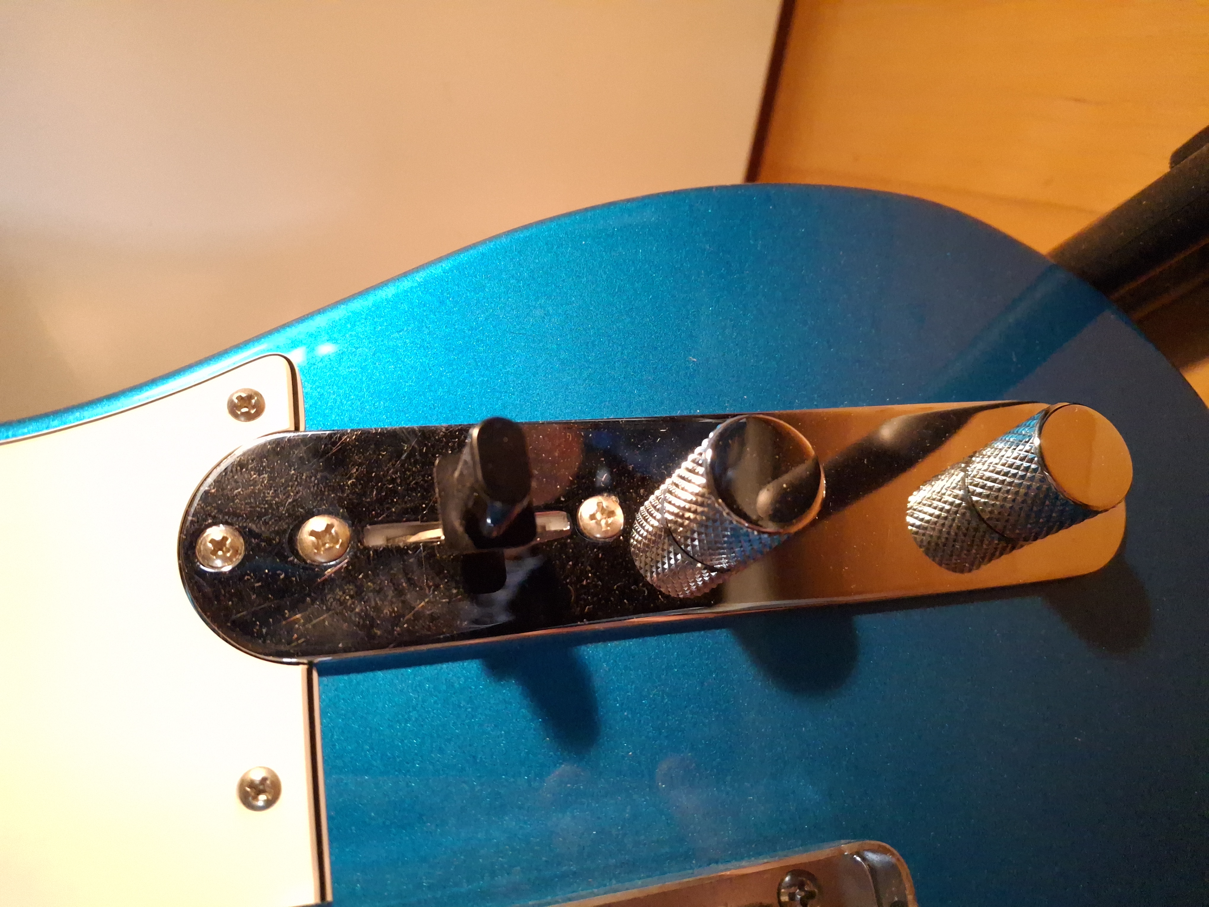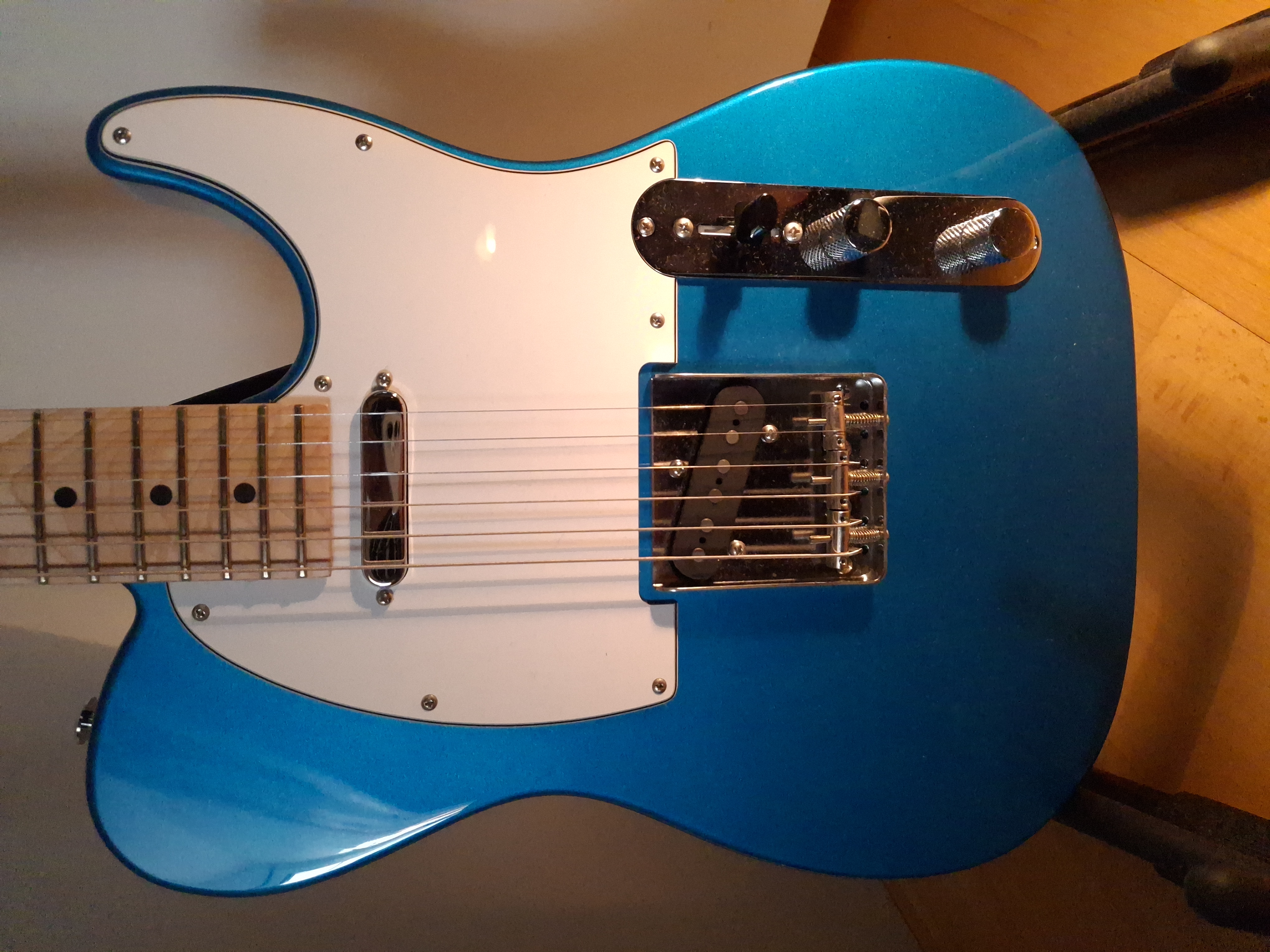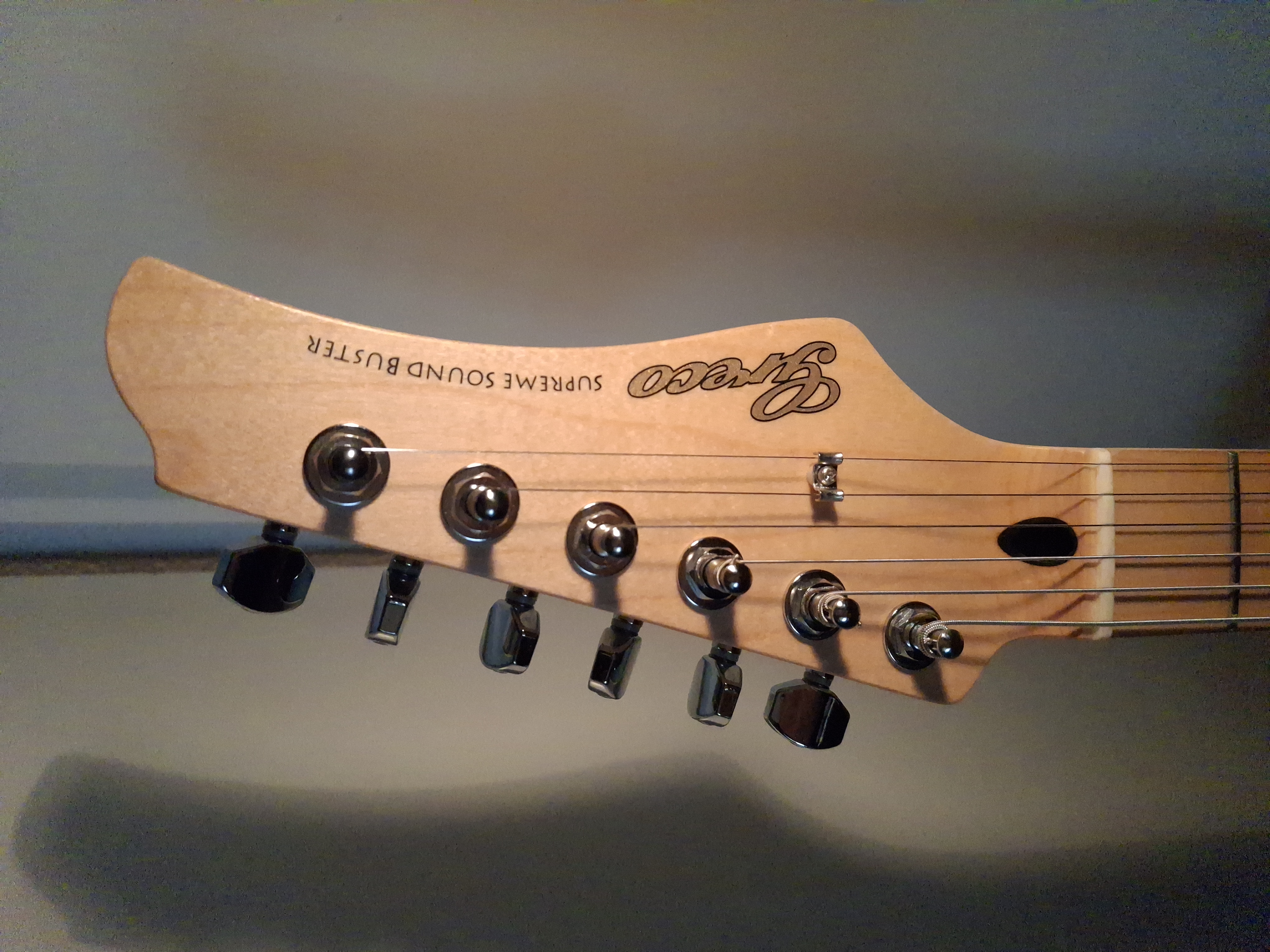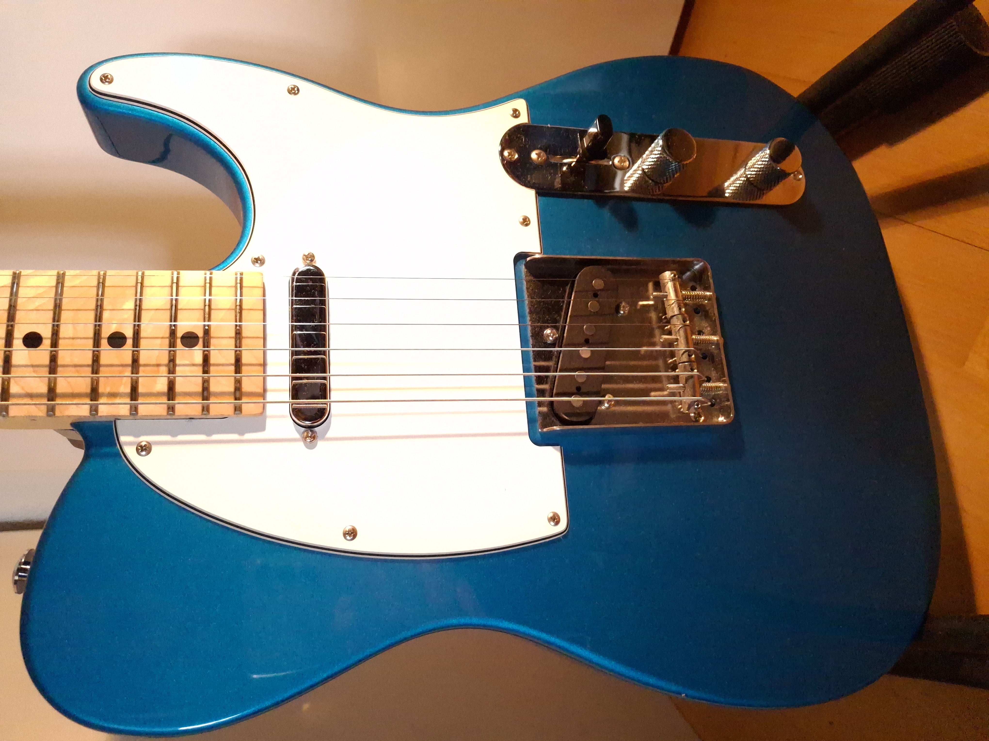 Except for a missing lacquer part on the back underside of the horn and some dings at the upper edge of the body, this guitar is like new.